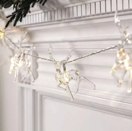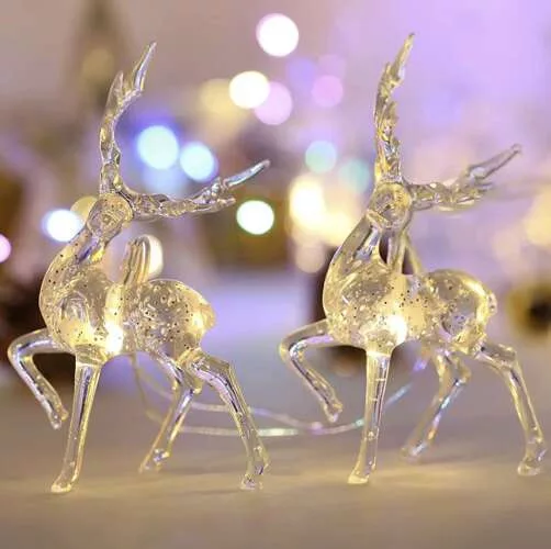 Ghirlandă de lumini LED cu reni pentru Crăciun, becuri calde albe pentru brad, set de 10 bucăți!