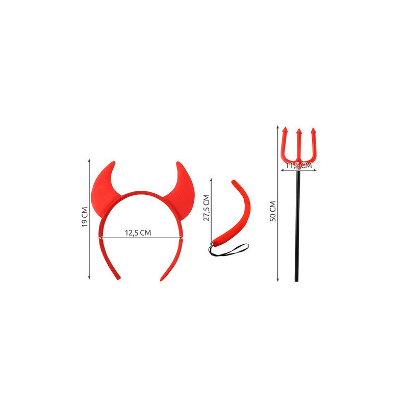 Pachetul conține: furcă, bentiță cu coarne, papion și coadă. Acest costum spectaculos va atrage cu siguranță atenția tuturor și, datorită designului estetic, este cu adevărat încântător. Cu ajutorul accesoriilor moi la atingere, te poți transforma cu ușurință într-un adevărat diavol!