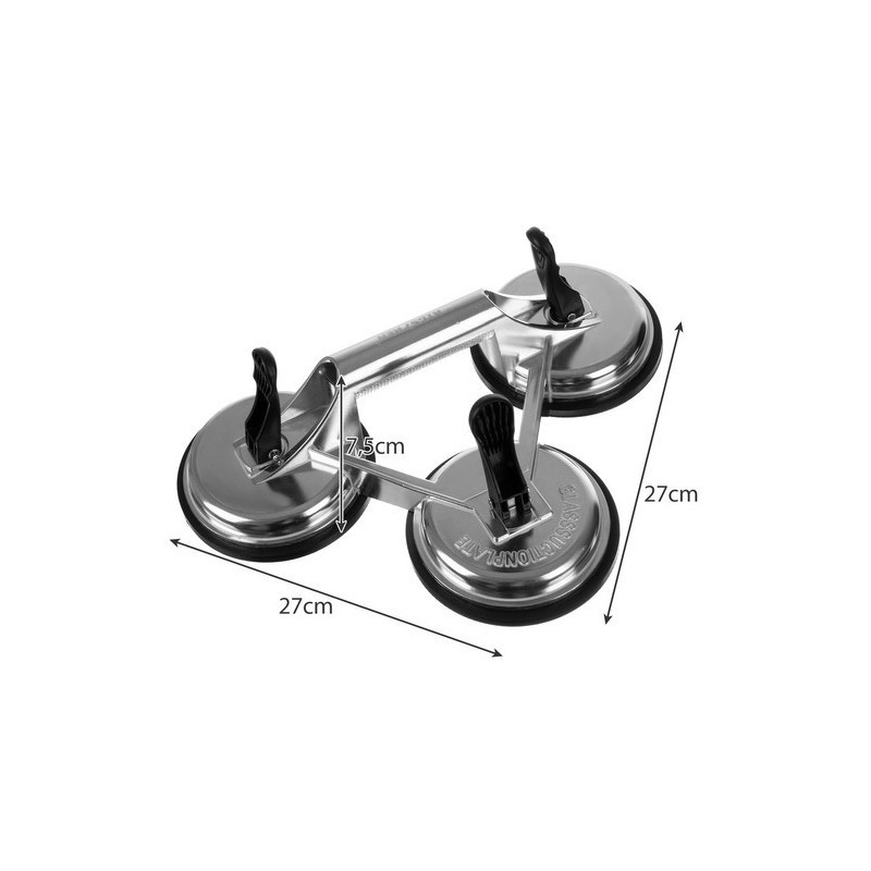 Mâner de Ridicare cu Ventuză din Aluminiu - 3 Ventuze din Cauciuc, 120 mm, Capacitate de 150 kg