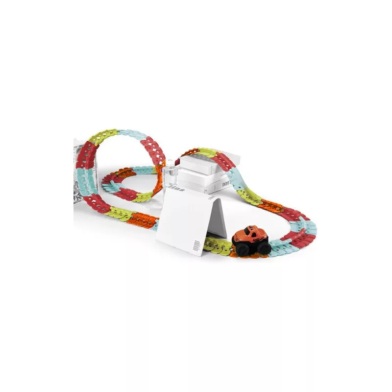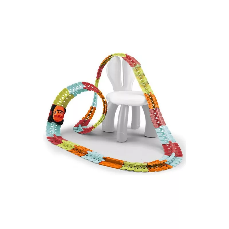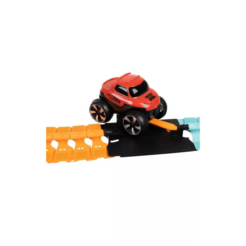 Elementele de pistă sunt ușor de modelat, astfel încât poți crea mereu trasee noi și palpitante. Gândiți-vă împreună la diferite configurații de pistă și vedeți cum se descurcă mașina cu diverse obstacole! Posibilitățile sunt infinite și plictiseala este exclusă.
