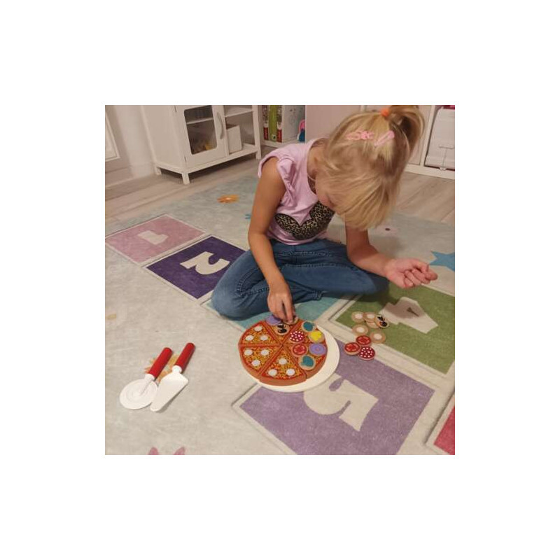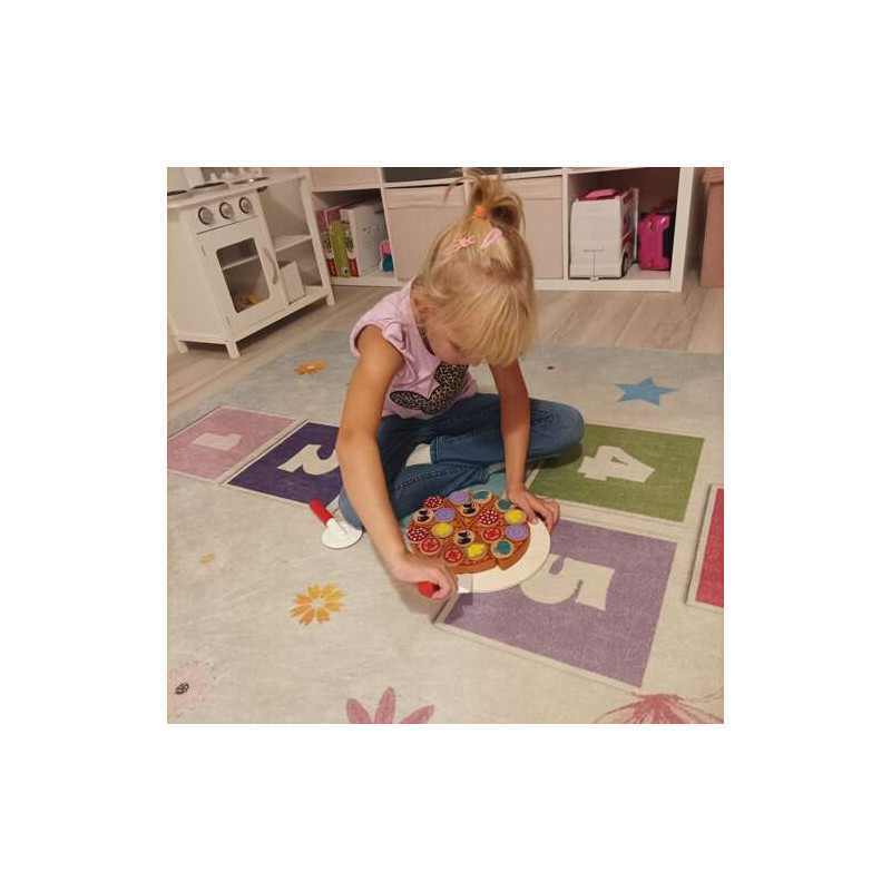 Această pizza din lemn este un accesoriu perfect pentru orice bucătărie din lemn, pe care o poți găsi de asemenea în oferta noastră. Jucăria este o alegere excelentă atât pentru băieți, cât și pentru fete. Culorile frumoase și vii atrag atenția copiilor, stimulează imaginația și încurajează jocul.