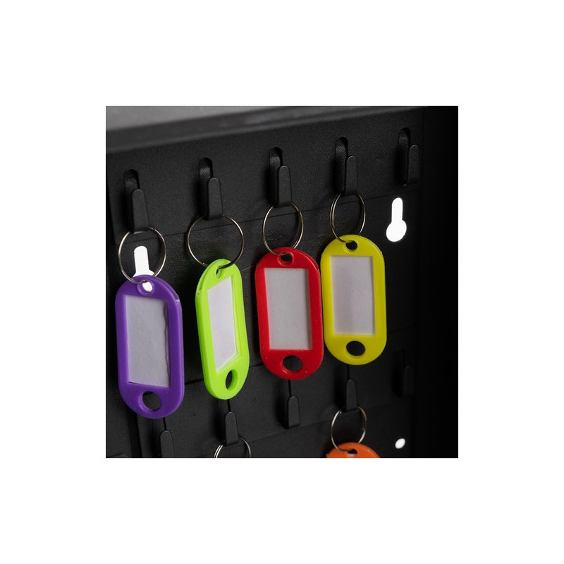 Cele 48 de identificatoare strălucesc în culori vii, astfel încât să găsești cheia dorită într-o clipă. Doar citește inscripția de pe etichetă și vei ști imediat unde aparține fiecare cheie. Poți scrie pe identificatoare un text scurt sau un număr, pentru a-ți ușura și mai mult munca.