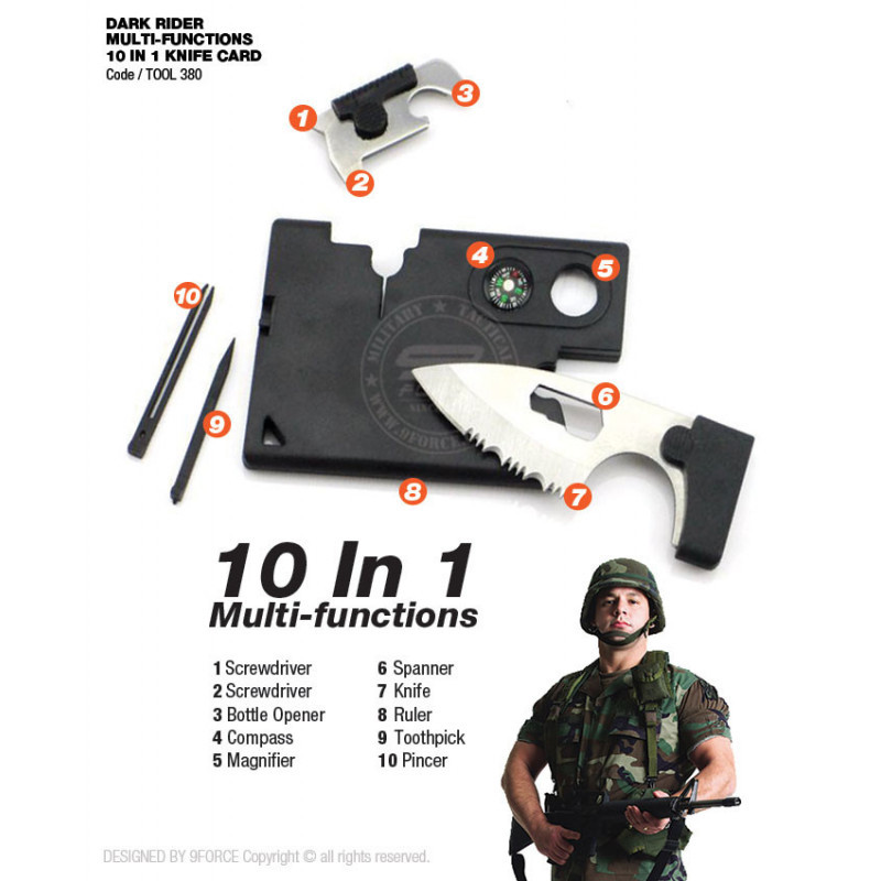 Card de supraviețuire multifuncțională cu unelte