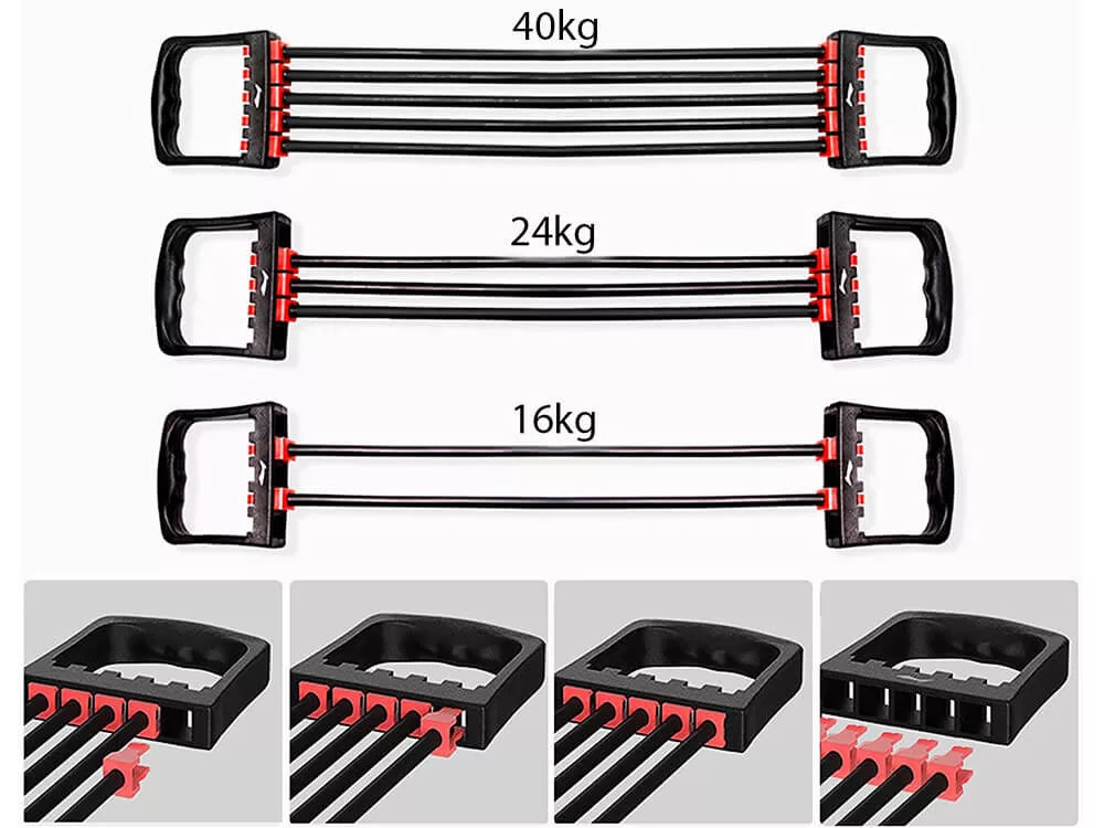 Cu acest produs, poți întări mușchii întregii părți superioare a corpului, datorită rezistenței progresive a benzilor de cauciuc. Benzile pot fi îndepărtate, permițând ajustarea ușoară a nivelului de dificultate (2 benzi suportă 16 kg, 3 benzi suportă 24 kg, iar 5 benzi pot suporta 40 kg). Avantajul său este că ocupă puțin spațiu și este simplu și confortabil de utilizat.