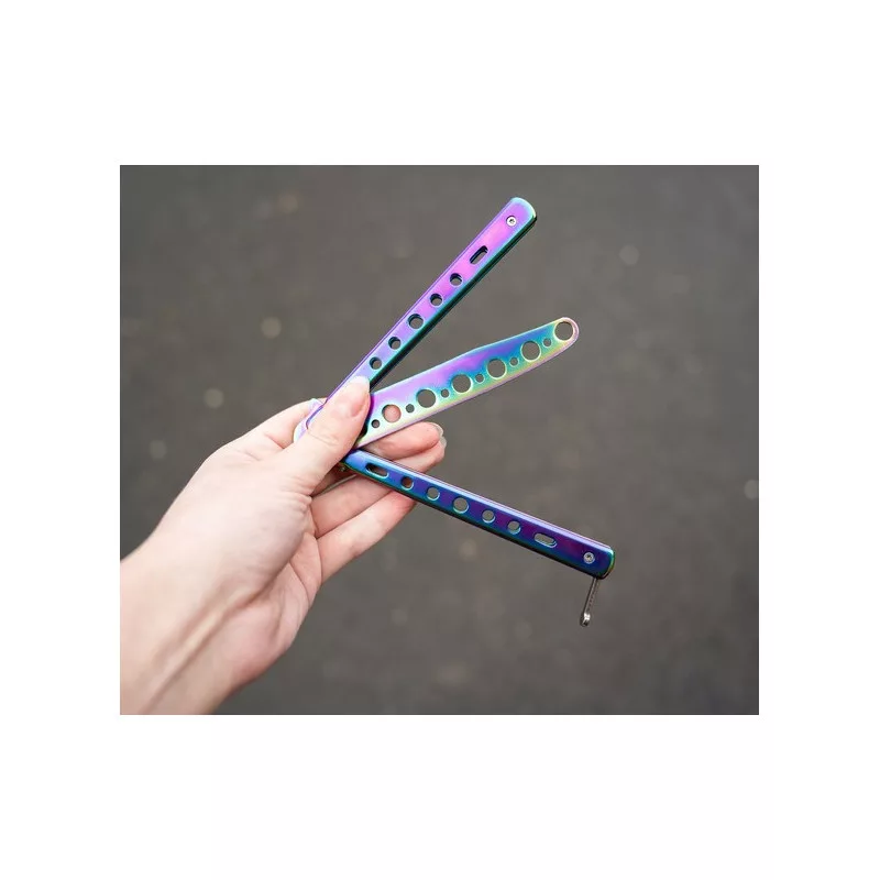 Îmbunătățește-ți dexteritatea și tehnica cu acest cuțit fluture de antrenament, instrumentul perfect pentru a exersa utilizarea cuțitelor fluture reale, fără riscul de tăieturi periculoase.