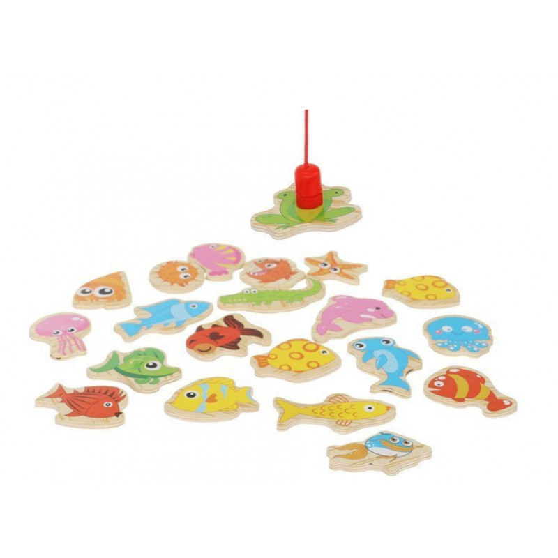 Jocul de pescuit magnetic stimulează imaginația, gândirea logică și memoria vizuală. Îl învață să asocieze formele și culorile, îmbunătățește dexteritatea manuală și, prin jocul în echipă, dezvoltă comportamentul social. Sub forme se află numere și denumirile lor în chineză, astfel încât copilul tău poate învăța o limbă nouă în timp ce se joacă. Jocul are margini moi, iar majoritatea pieselor sunt fabricate din lemn.