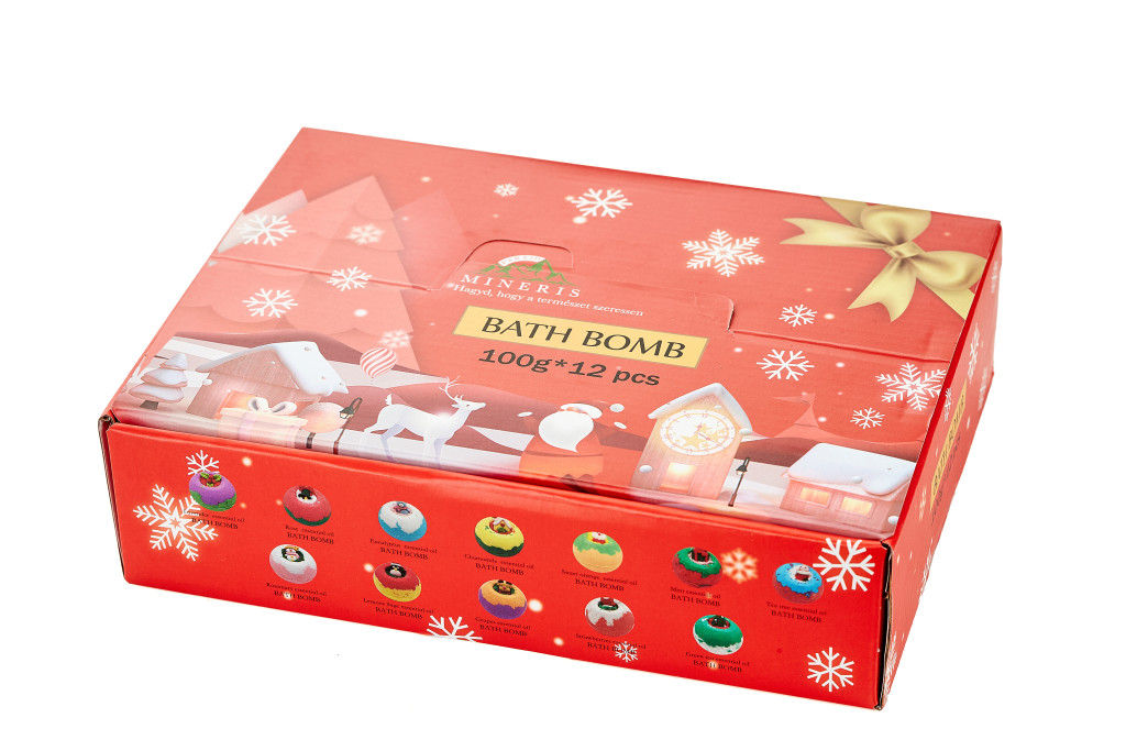 Cutia conține 12 bombe de baie, fiecare cântărind 100 de grame, oferind o experiență unică de Crăciun atât pentru copii, cât și pentru adulți.